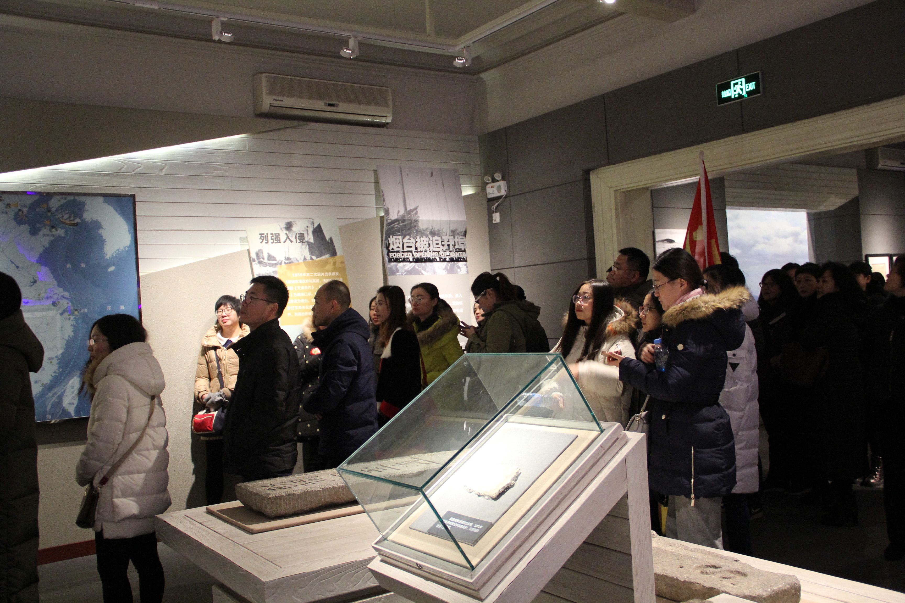 個單元,回顧了膠東人民在中國共產黨領導下,為了民族獨立和人民解放、國家富強和人民幸福,前赴后繼、奮勇前進的光輝歷程。通過聽取工作人員聲情并茂的講解,觀看記載歷史的視頻短片、文字、圖片和文物,大家被“忠誠堅定、不畏艱難、敢為人先、無私奉獻”的膠東革命精神深深的感染著。在煙臺開埠陳列館,通過實物資料、圖片資料、文字資料展示了從二次鴉片戰爭之后到辛亥革命前期,